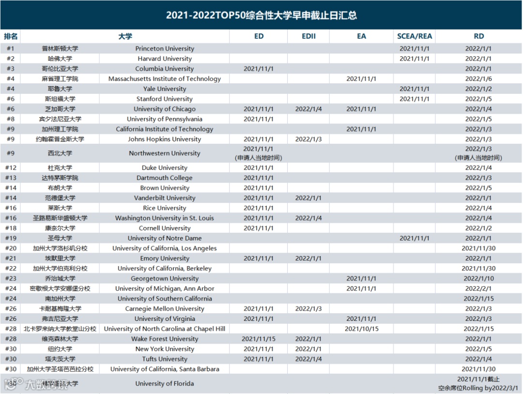 * ED1的截止日期一般为11月1日,也有一些较晚的为11月15日。ED2的截止日期通常为1月1日左右。