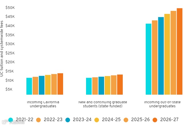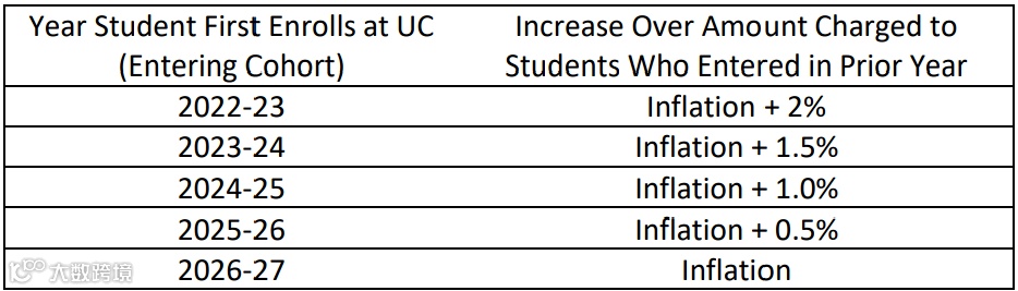 加州大学还称,学费计划还将增加研究生的学费,但所有学生的学费将从2022-2023学年开始,与通货膨胀率挂钩。