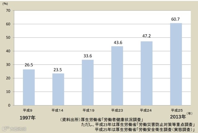 配备有心理咨询室的企业占比从1997年的26.5%,上升到2013年的60.7%。