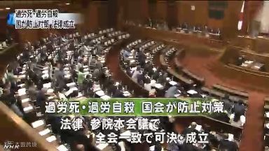 2014年6月20日,对于防止“过劳死”有重大推动作用的法案《过劳死等防止对策推进法》在日本参议院全票通过,它的通过意味着日本政府开始监督所有企业,并动用国家力量采取行之有效的手段解决过劳死问题。