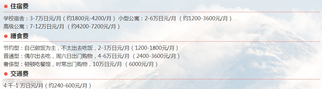 房租、伙食费和学生保险,这3项是必须的,一般学校都提供学生乘车免票,所以交通费没考虑在内。