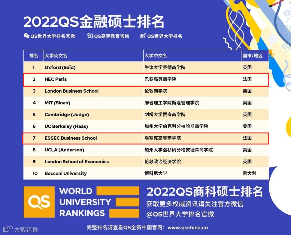 要说起市场营销,法国可是厉害了,全球前十法国上榜5所院校,占一半!这可能与法国奢侈品领域十分强悍这个得天独厚的优势息息相关吧~
