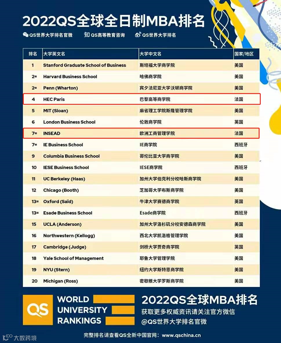 其中法国HEC高商(第4名)和INSEAD高商(第7名)跻身进入全球前十,想申请MBA的小伙伴们,这两所高商应该说是法国MBA领域的最高学府啦~