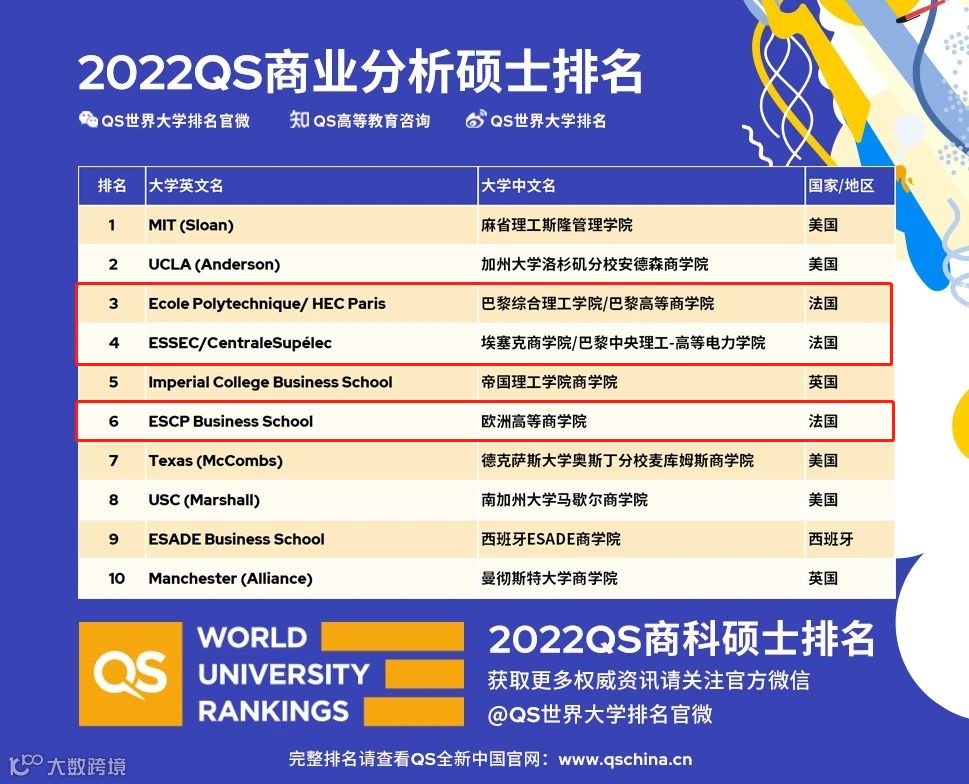 下面就让我们一起来看看商科硕士排名中法国院校的表现吧~