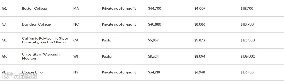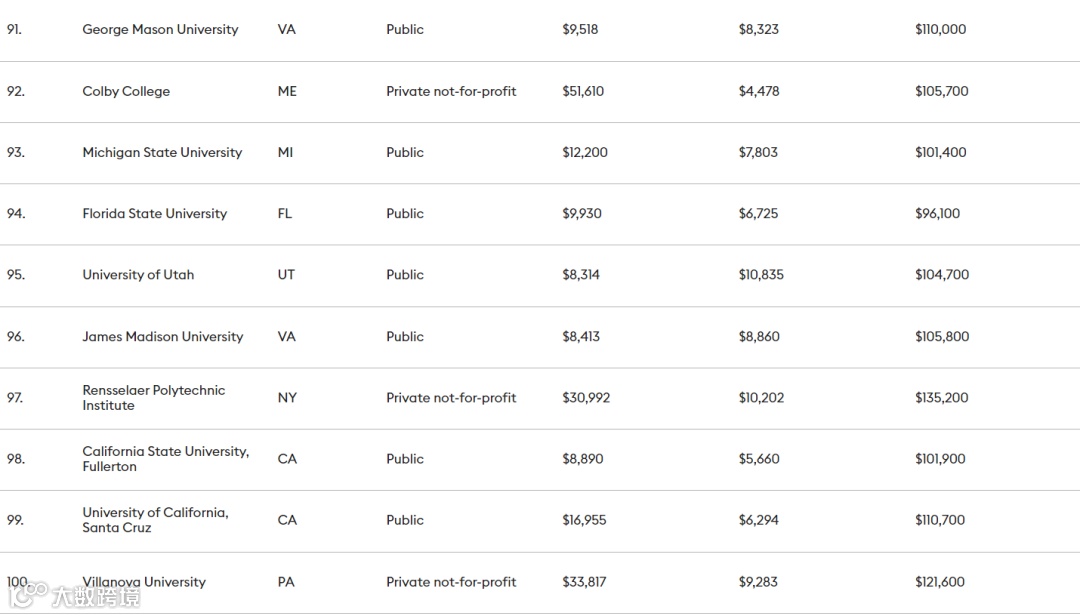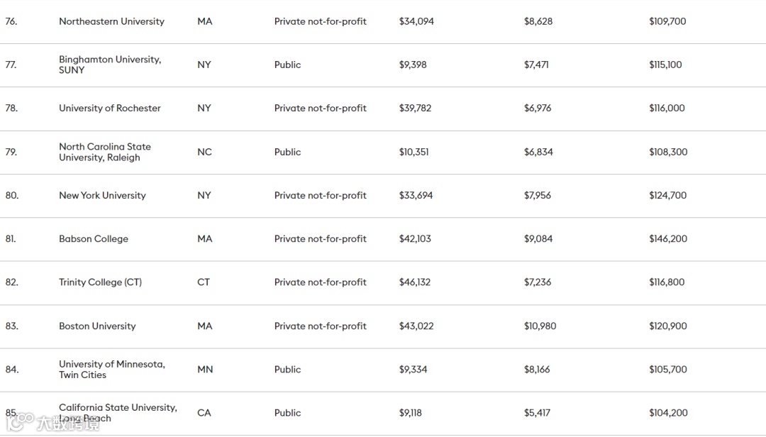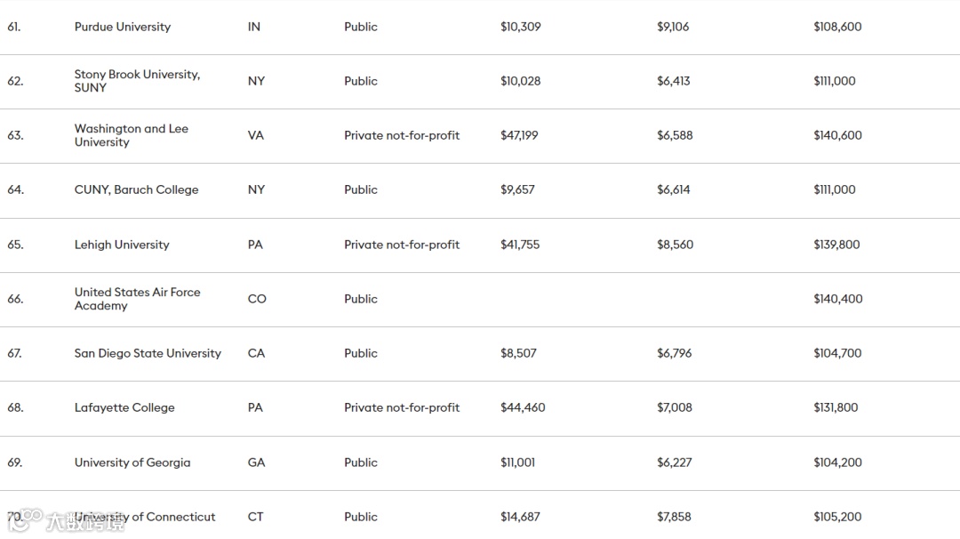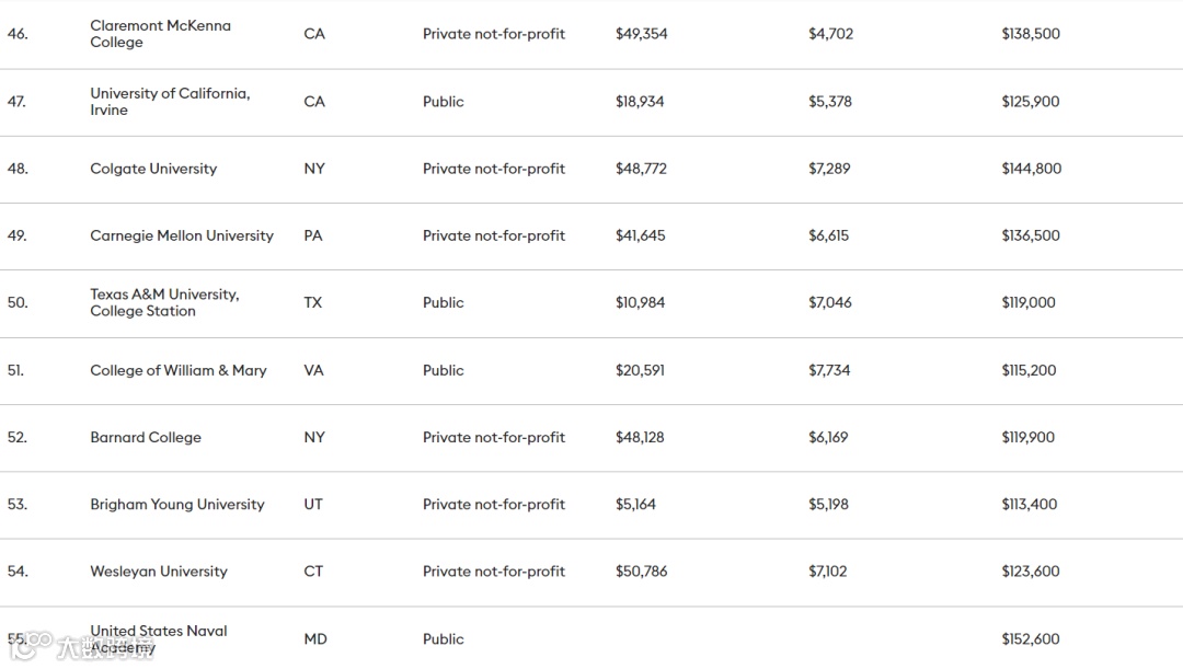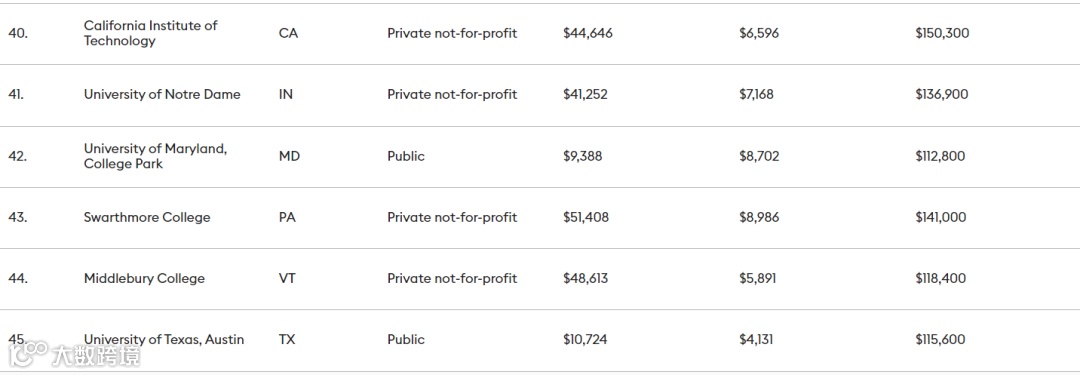 与我们所熟知的U.S.News、QS和THE等榜单注重学术成就不同,福布斯这份榜单的评估基准不仅仅在于学术表现、学科排名和录取率等方面,更侧重于投资回报率。
