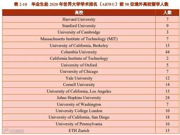 清华大学和上海交通大学两所国内名校还公布了毕业生海外升学的详细去向数据——