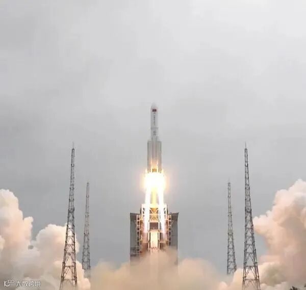 2021年4月29日11时23分,长征五号B遥二运载火箭搭载空间站天和核心舱在文昌航天发射场,通过发射塔架成功发射。