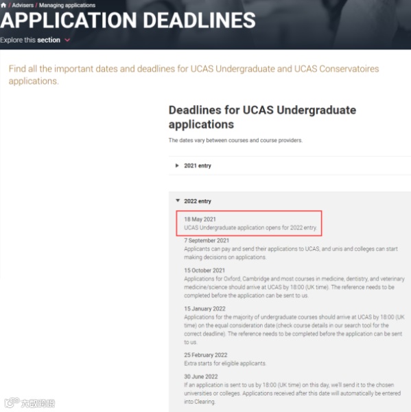 而医学、牙医、兽医类专业,以及牛津、剑桥大学的所有专业课程申请截止日为2021年10月15日。