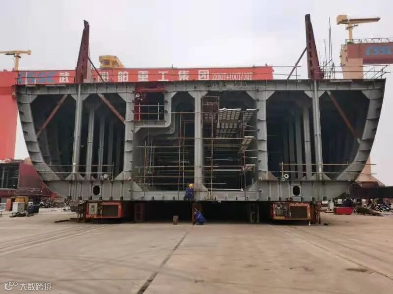 这是公司首次使用模块车完成近1000吨总段与艉岛合拢工作,不仅缩短了船台建造周期,也为后续同类型船舶大吨位总段合拢建造打下坚实基础。