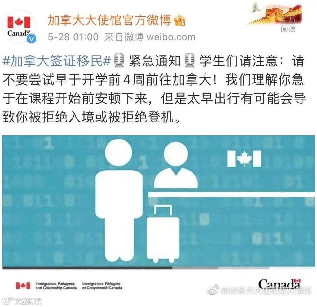 留学生在早于开学前四周前往加拿大,可能被拒绝入境或拒绝登机!