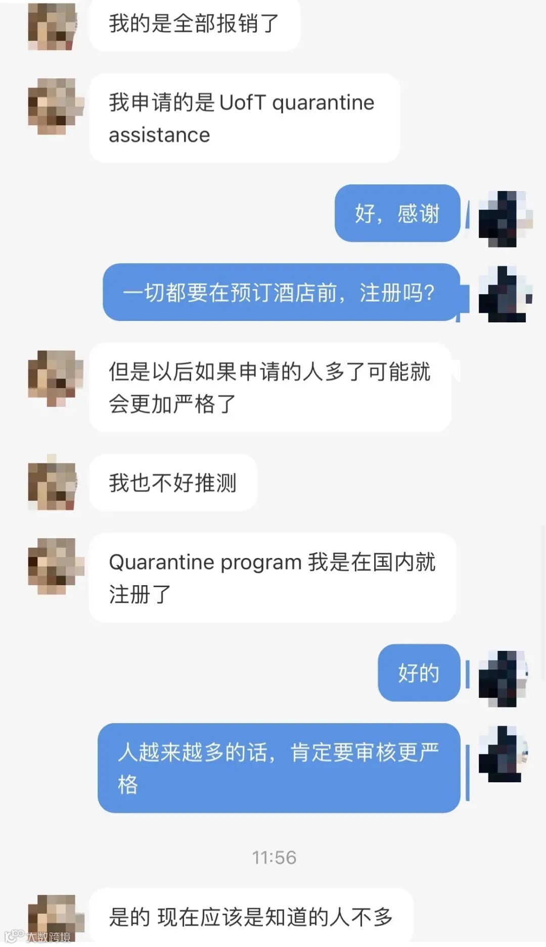 受采访的学生表示,自己的文件和资质符合要求,多伦多大学报销了全部隔离费用。