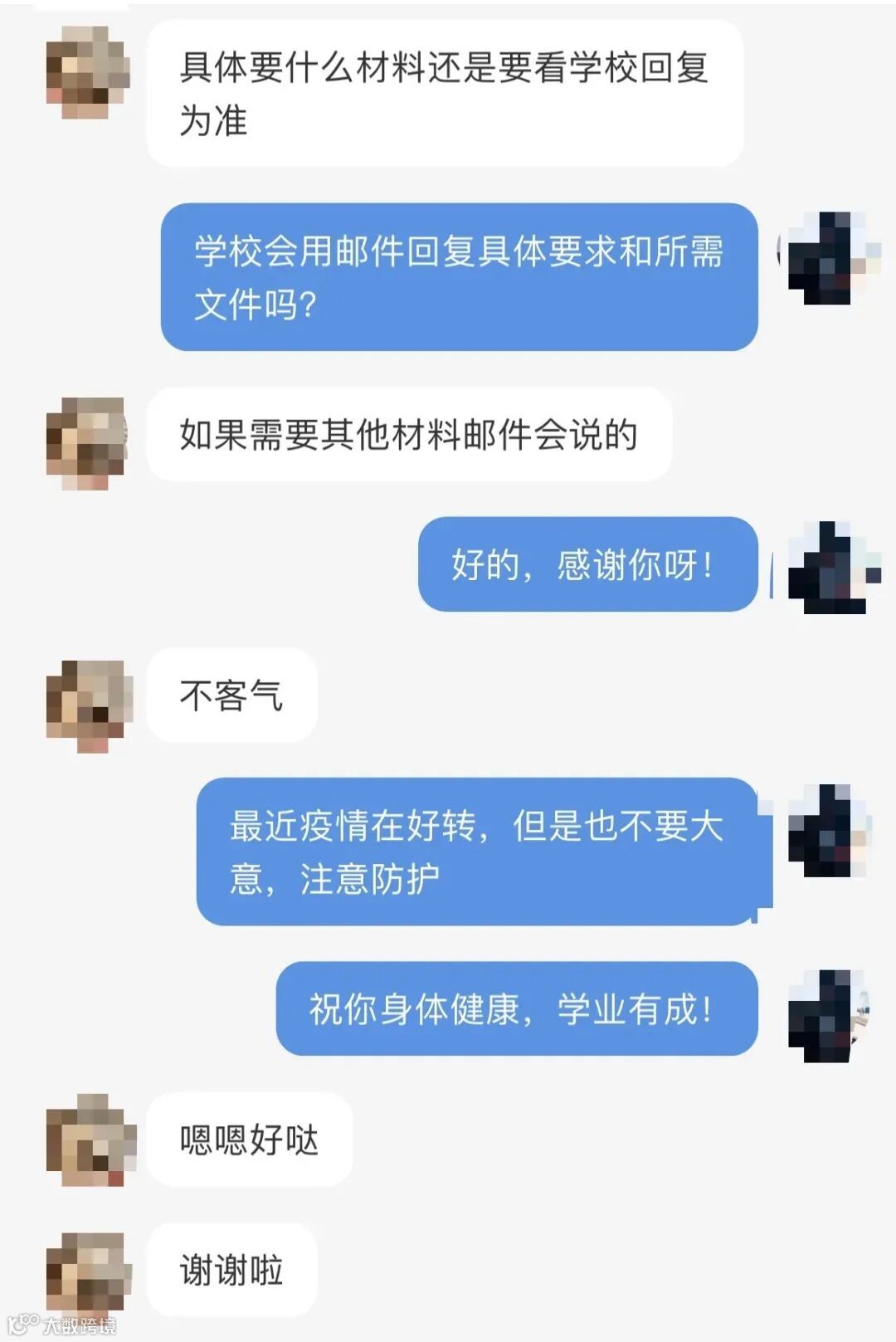 该学生表示,每个人情况会有所不同,具体的所需材料也不同。如果需要额外材料,学校会通过邮件回复申请者。