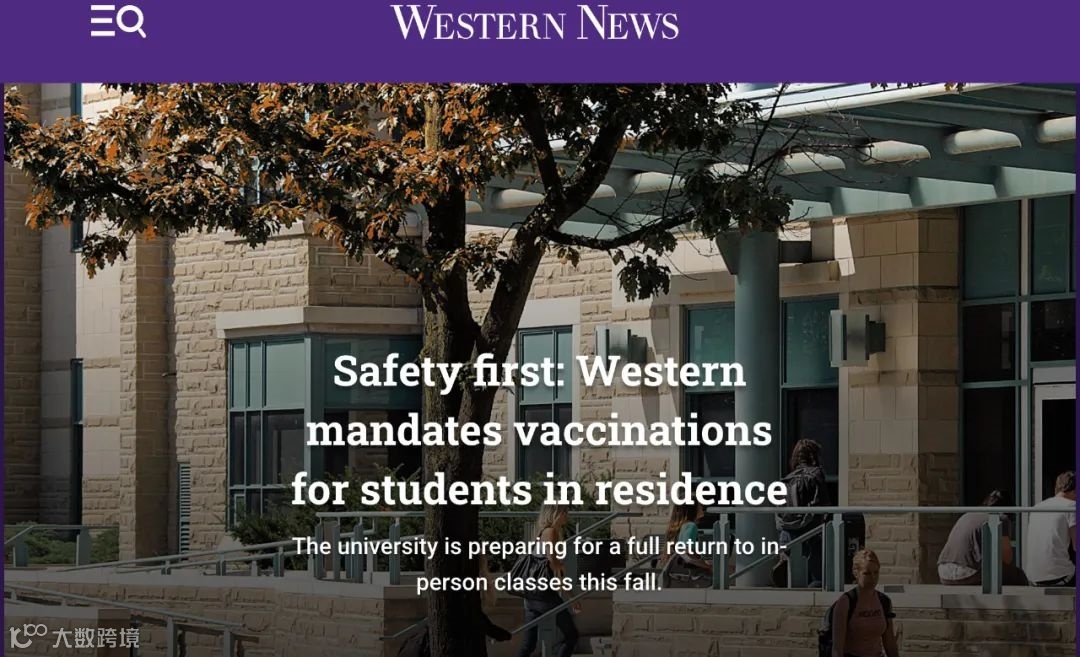 近日Western University 韦仕敦大学(西安大略大学)宣布,本学校的住校学生以及其附属学院的住校学生,在抵达学校前必须至少接种第一剂新冠疫苗。