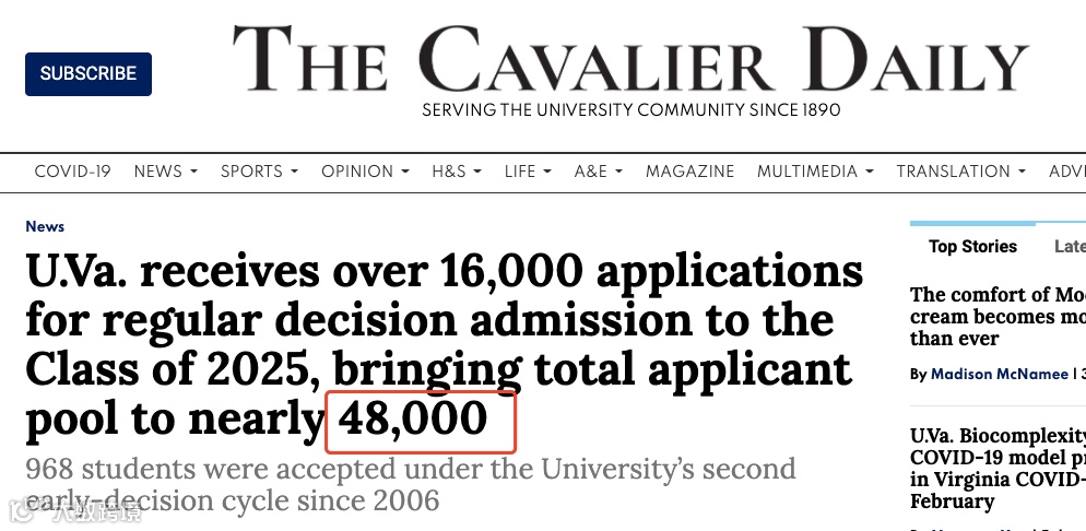今年UVA收到的申请量是47,827份,比去年增加了17%,预计招生只有3,800人,而这其中33%的名额已经分给了ED申请人。