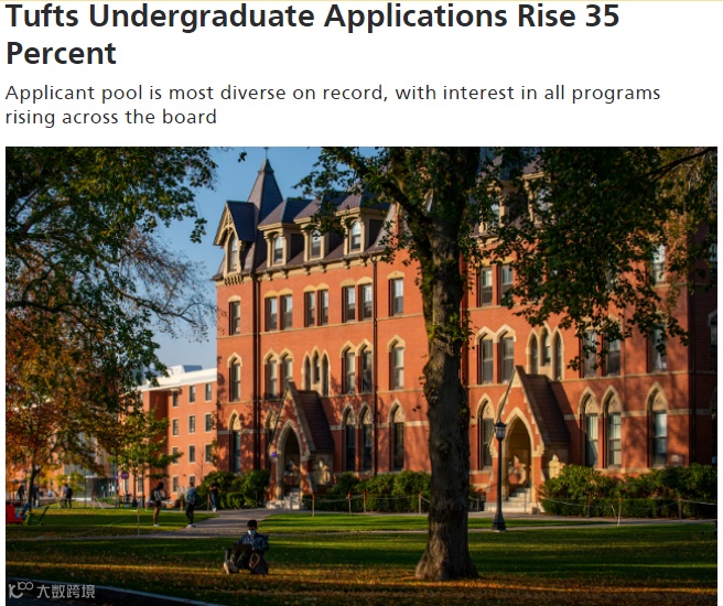 此外,还有一所Top30大学宣布申请人数暴增——塔夫茨大学今年的本科申请人数为史上最多,增加了35%!