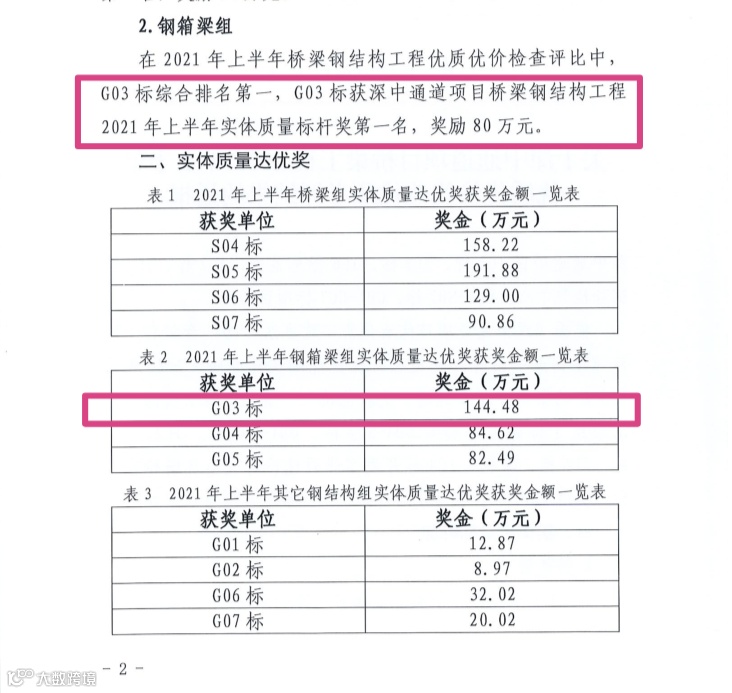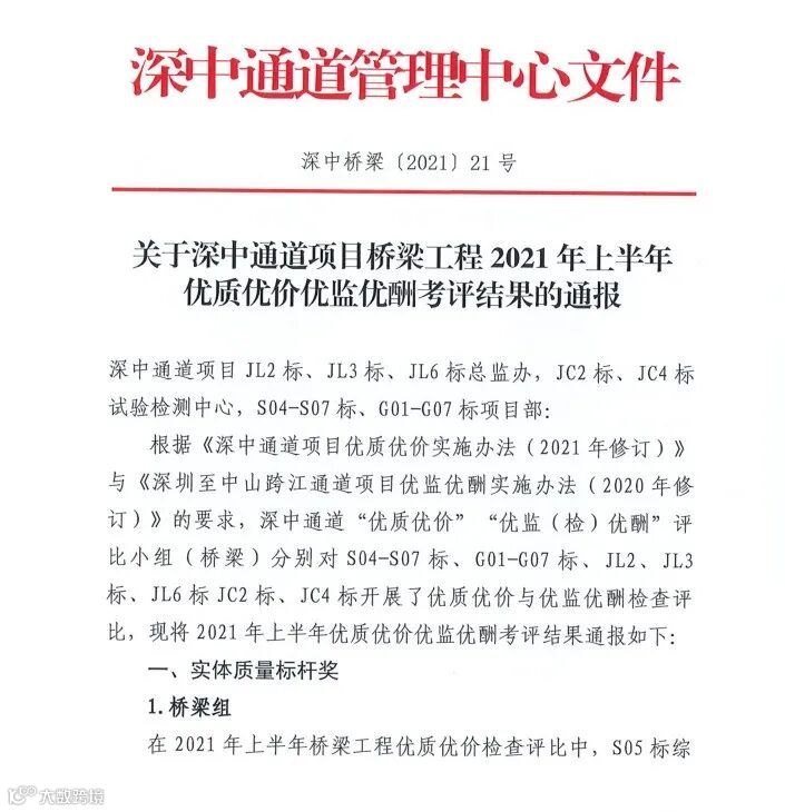 8月13日,中国船舶武船集团武船重工股份承建的深中通道G03标在深中通道桥梁工程2021年上半年优质优价检查评比中