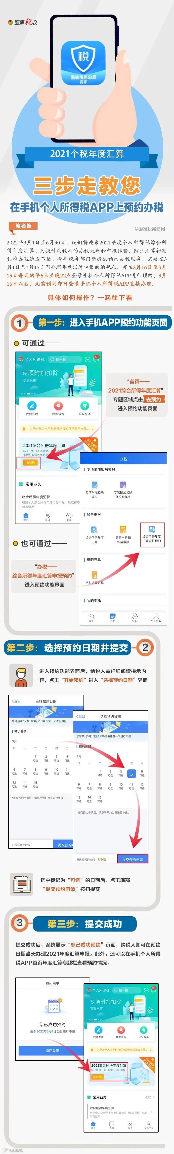 近期,国家税务总局发布公告称,2022年3月1日至6月30日,符合相关规定的居民个人需要办理2021年度个人所得税综合所得汇算清缴事项。今起(2月16日)可以开始预约办理。