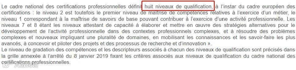 RNCP等级发生了变化,目录中的证书被划分为八级,并且第八级才是最高级别。大家一定要注意啦!