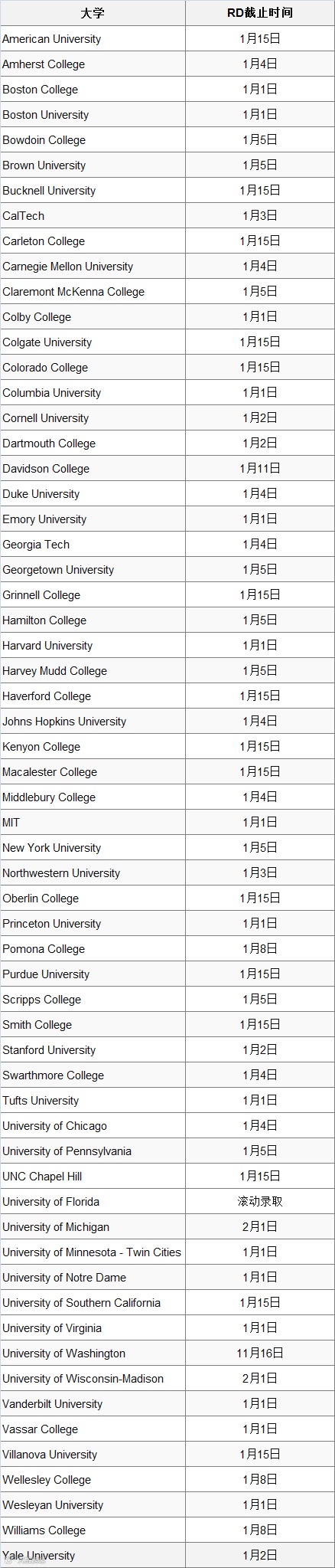 RD一般也是1月陆续截止,不过像加州大学系统今年12月4日就截止了,还有一些大学是“Rolling滚动录取”,比如佛罗里达大学、匹兹堡,说是“滚动”其实都是先到先得,一般到学校设定的“优先截止日期”就差不多满位了,建议早早申请哦!
