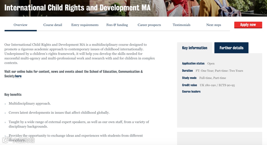✦ 具有相关专业背景,或者有相关工作经验,如果本科学位与国际发展或儿童问题无关,则需要说明申请人自身相关技能或经验与申请专业的契合点,其他专业背景的申请人如果有儿童相关的志愿者经验学校也会考虑;