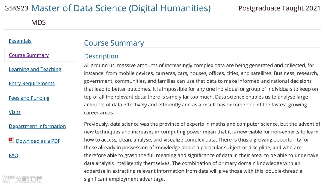 https://www.dur.ac.uk/courses/info/?id=27342&title=Master+of+Data+Science+%28Digital+Humanities%29&code=G5K923&type=MDS&year=2021#coursecontent