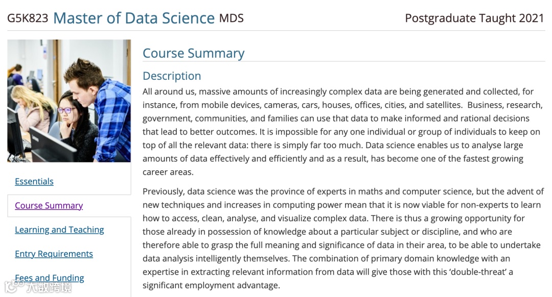 https://www.dur.ac.uk/courses/info/?id=27337&title=Master+of+Data+Science&code=G5K823&type=MDS&year=2021#coursecontent