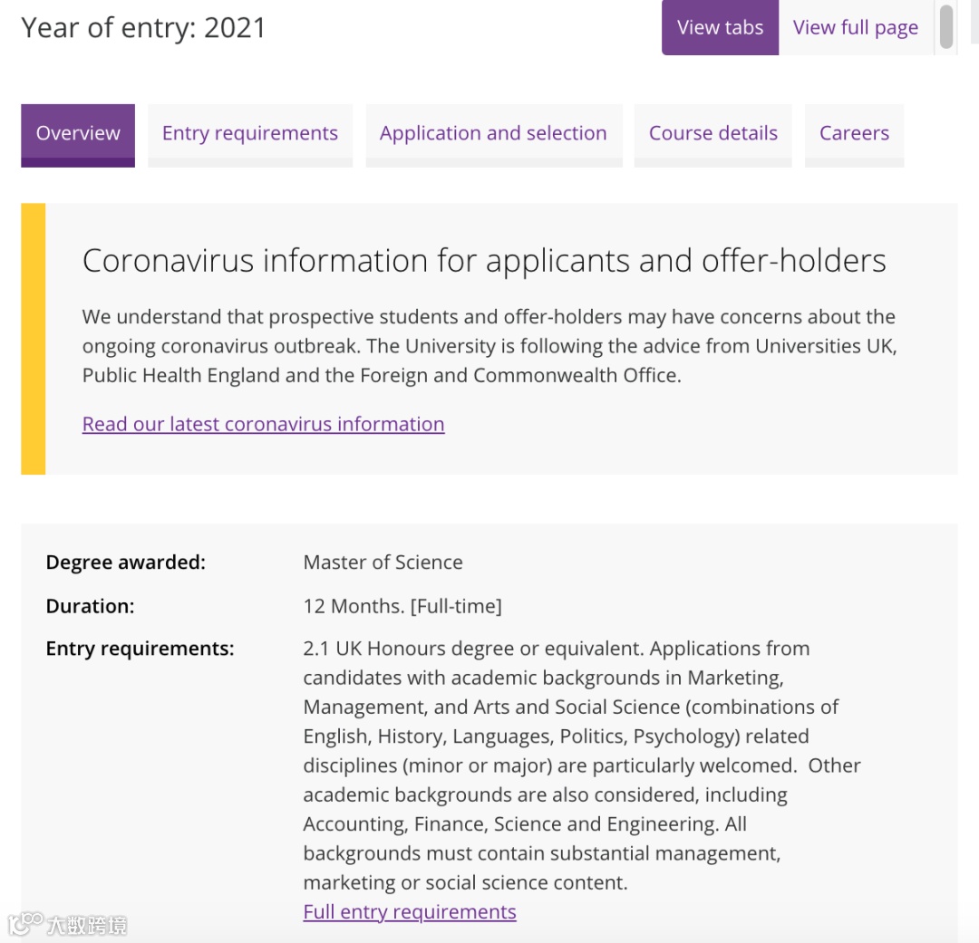 ✦ 该项目特别欢迎具有市场营销、管理、艺术和社科(比如英语、历史、语言、政治、心理学)背景的申请人递交申请,其他学术背景比如会计、金融、理工科也考虑;