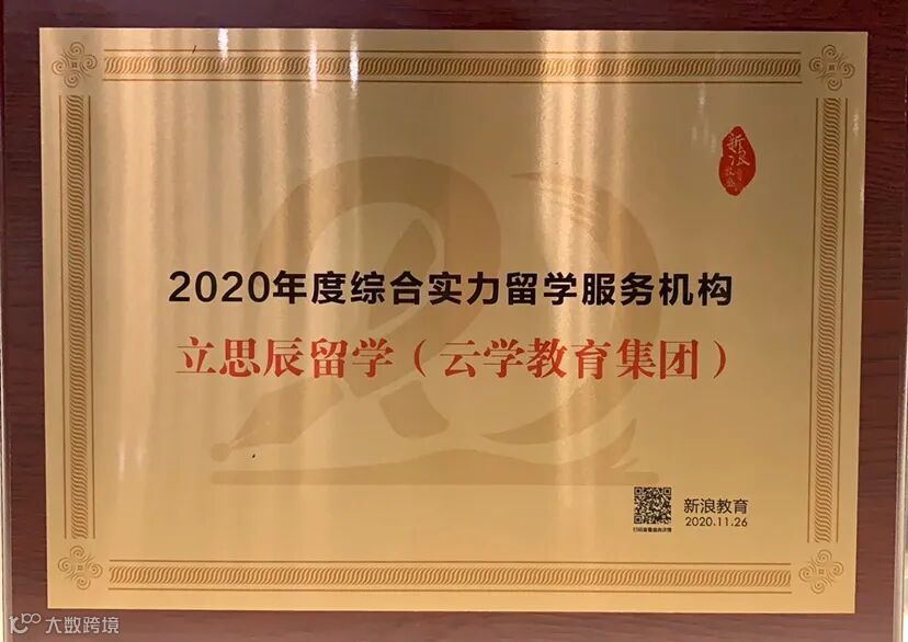 立思辰留学凭借优秀的服务以及良好的口碑荣获“2020年度综合实力留学服务机构”奖项。