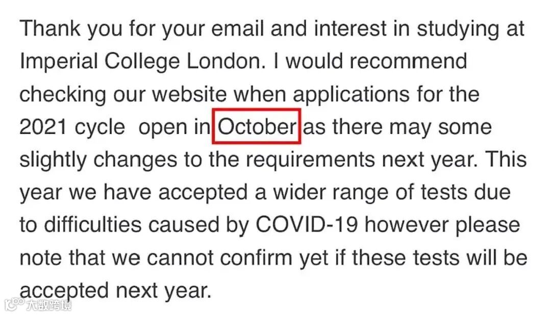 官网未公布今年申请开放时间,商学院在邮件中回复说10月开放申请。特别提醒大家注意,帝国理工并未确定会新的申请季会考虑接受哪些语言考试的成绩,所以大家目前还是准备和参加托福雅思这种主流的语言考试比较好。