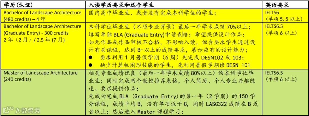 新西兰:林肯、维大(BAS in LS+MLA 5 years)、Unitec (BLA 4 years)