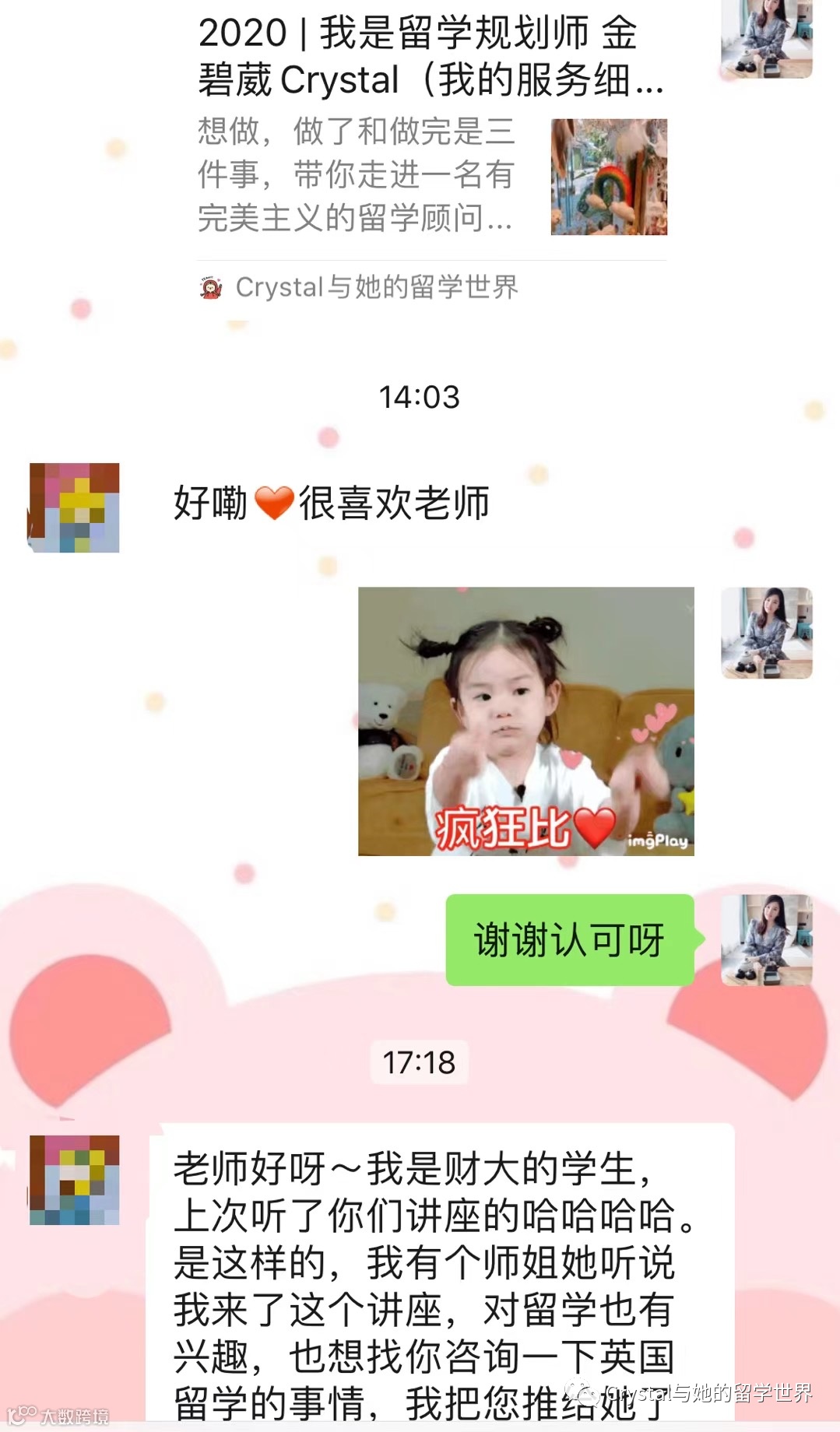 教育行业真的是很辛苦的行业,没有情怀很难一直坚持下去,永远想的是学生的申请怎么可以做的更好,感恩太多的理解、认可和尊重。在平凡的岗位做好也能发挥最大的价值。