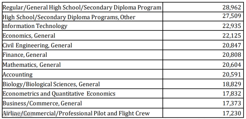 以下为20个最受留学生欢迎的专业以及就读人数: