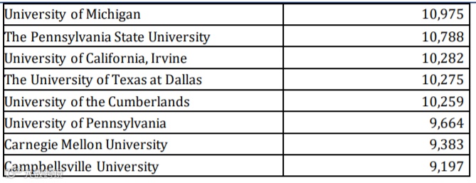 东北大学和南加大紧随其后,留学生数量也超过了19万,具体招收留学生最多的前20大学排名如下: