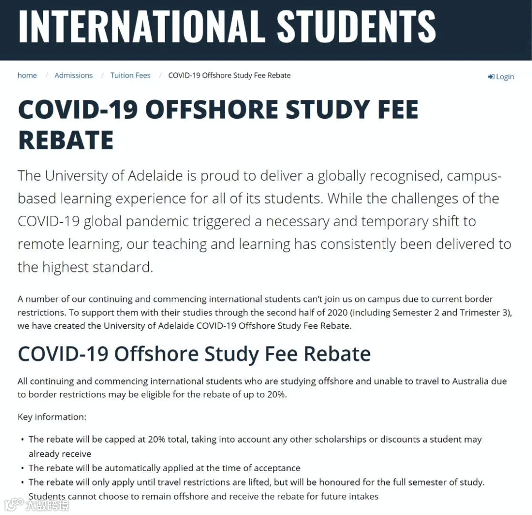 好消息!阿德莱德大学决定为因COVID-19旅行限制而无法前往澳大利亚,在海外入读本科及授课型硕士的国际学生们提供今年Semester 2和Trimester 3学期学费至多20%的减免。