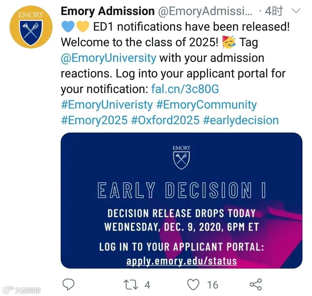 有申请埃默里的同学们,赶紧去看看有没有好消息吧!