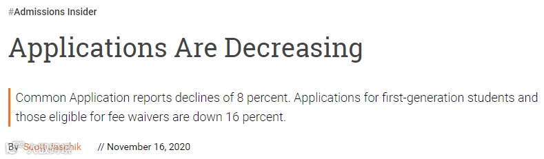 11月16日,美国高等教育内幕网发布了一条新闻:美本申请总量正在减少。