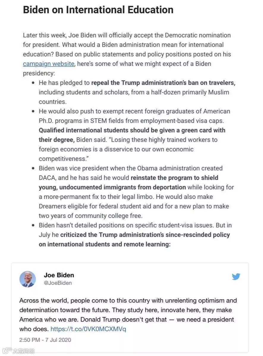 也就是说,无论是赴美留学,还是留美就业,在拜登上台后都将变得顺畅很多,赴美留学仍旧是性价比最高的选项!