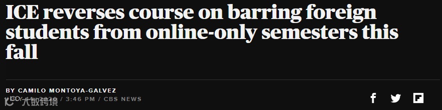 根据CBS报道,ICE将恢复今年3月份发布的指导意见,允许国际学生持学生签证留在美国进行全网课学习。