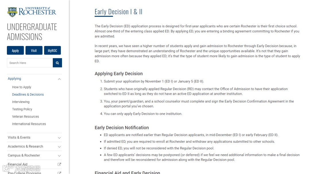 罗彻斯特大学是美国一所著名的私立研究型大学,坐落在美国纽约州的罗彻斯特市。是25所"新常春藤"院校之一,学校在多个权威机构的世界大学排名中也一直稳居前50。为了保证入学率,罗切斯特大学也新增了具有约束力的ED 2,1月5日截止申请,ED 1是11月1日截止申请。据了解,罗切斯特大约三分之一的新生是通过 ED 早申请录取。