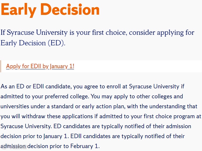 雪城大学成立于1870年,是一家私立研究型大学,位于美国纽约州雪城。1966年,雪城大学加入北美大学联盟(AAU)。今年,雪城大学新增了ED 2申请批次,于1月1日截止申请,ED 1批次截止日期为11月15日,常规申请截止日期为1月1日。