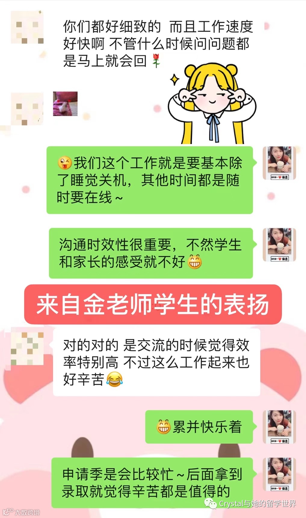 最近,有很多同学通过这篇文章《2020丨我是留学规划师 金碧葳Crystal 》,认识了我们认真、细致、负责的金老师!但这还只是一小部分,关于她和留学的故事还有很多,我们等你来慢慢来了解哦~