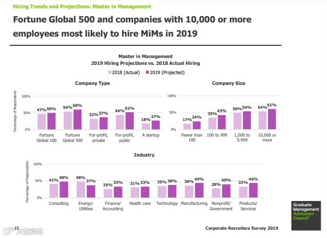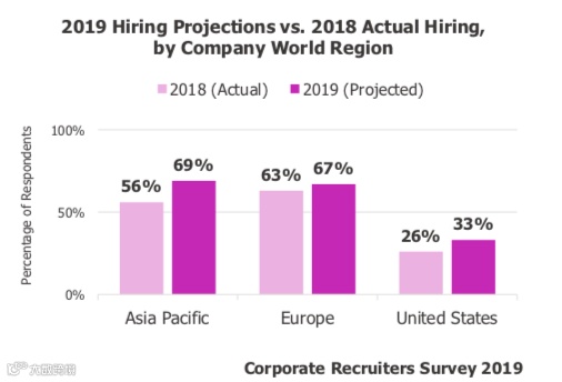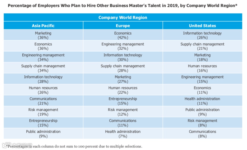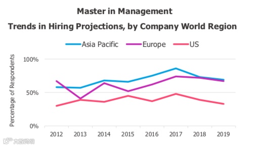 在2019年,69%的亚太公司和67%的欧洲公司计划招聘管理学硕士。