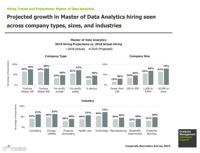 值得注意的是,大多数《财富》全球100,500强以及盈利上市公司都有2019年“数据分析硕士”的招聘计划。