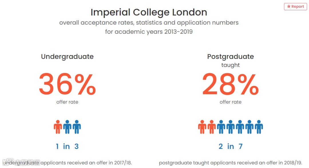 2017/18入学季,帝国理工学院的本科录取率为36%,2018/19入学季的研究生录取率为28%。