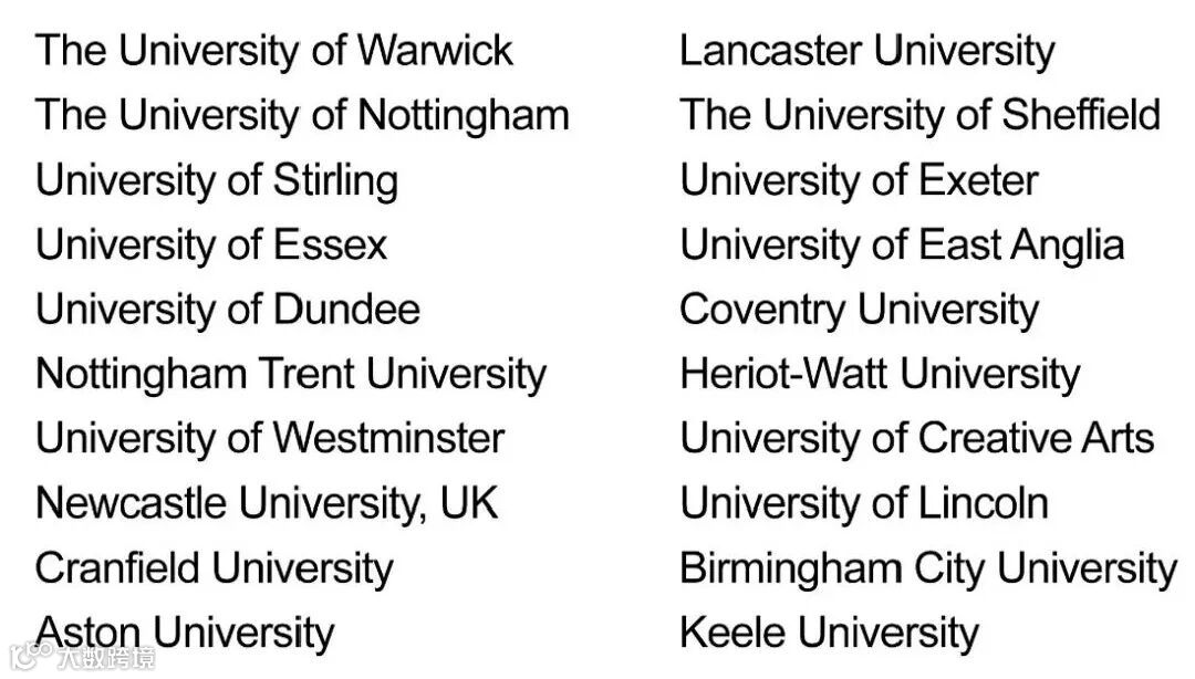 诺丁汉大学、考文垂大学,赫瑞瓦特大学、