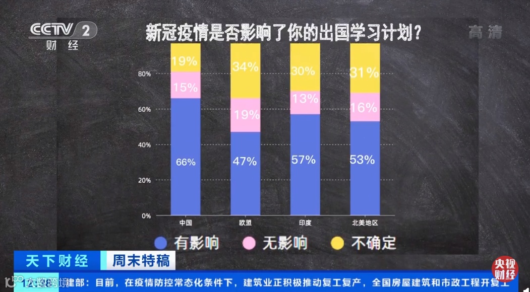 根据QS的最新报告显示,受访留学生中:有50%的留学生,因疫情影响了留学计划,其中有66%的中国留学生受到了影响,占比最高。