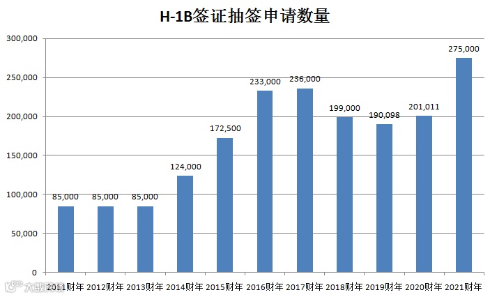 而2021财年,根据美移民局公布的最新数据,今年参与 H-1B 抽签人数激增到27.5万,比去年同比增长7.4万。