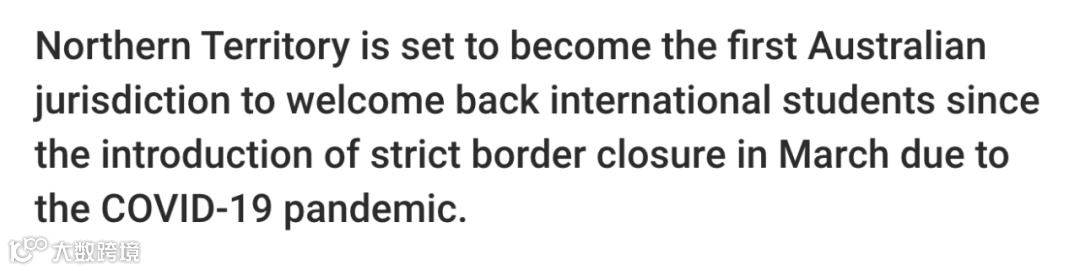 首批是查尔斯·达尔文大学(Charles Darwin University)的学生,他们将Howard Spring的政府指定隔离机构进行为期两周的强制隔离并通过病毒检测后重返校园,确保能在11月9日的入学季顺利开学。