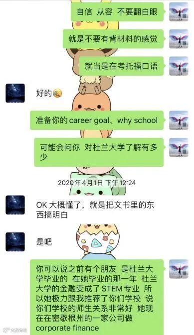 不同于其他学校的Kira面试,杜兰大学要求是真的招生官面试,这让小兰非常紧张,我马上跟他梳理了一些面试的问题,并确定面试的时间:4月9日晚上10点。