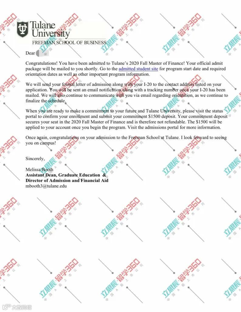 五天之后,我们就收到了全美排名40名的杜兰大学发过来的录取!